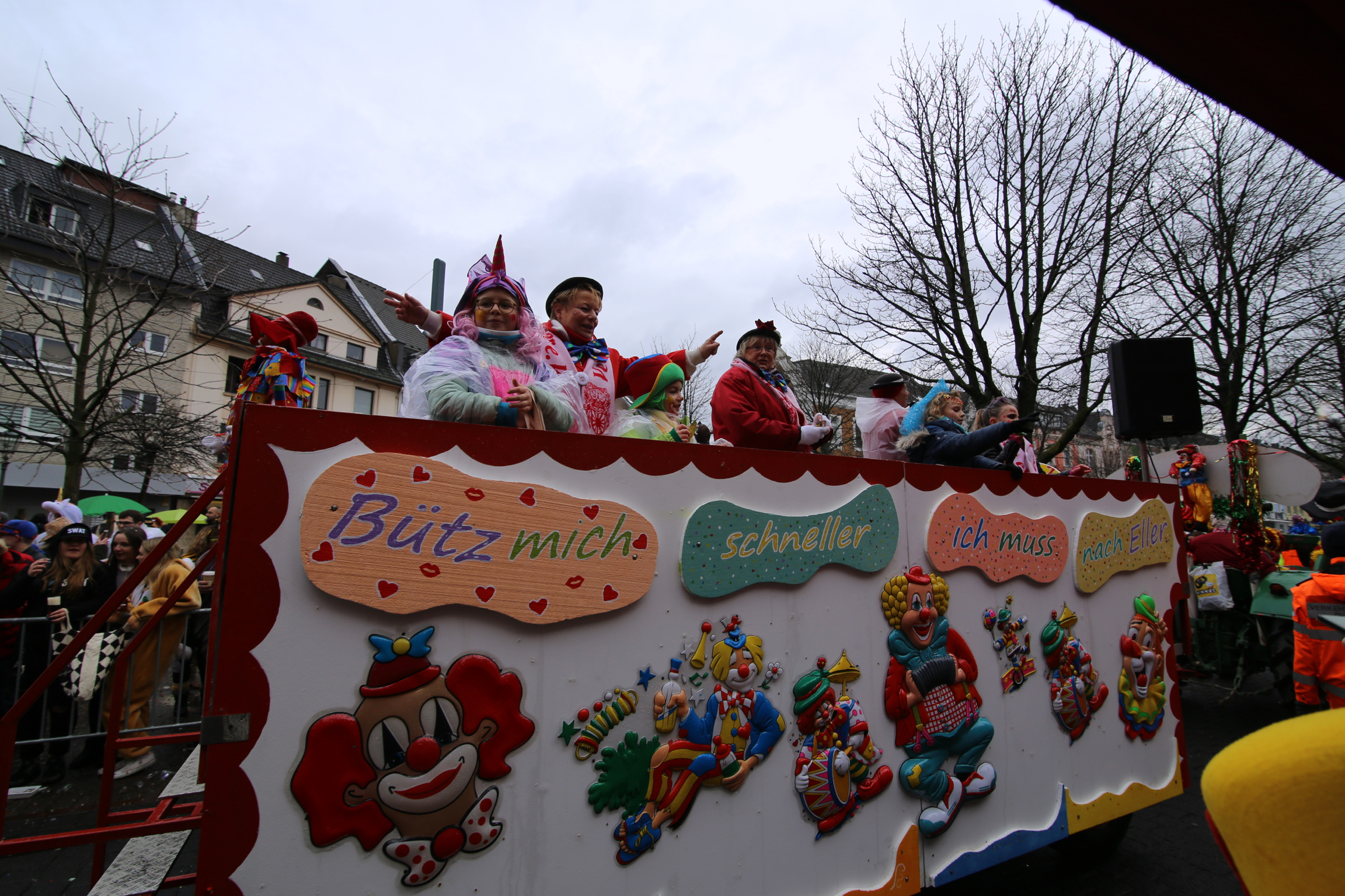 Allein 150 Mitglieder und Gäste kamen zum Richtfest. Neben Brauchtumsvereinen, der Werbegemeinschaft Eller, Gruppen und Wagenbesatzungen kamen Künstlerinnen wie Mo Weirich und Angelika Glitzer, die Närrischen Marktweiber, die Tanzgarde des TSC Rhein-Stars, die Rhythmik-Fanfaren Düsseldorf-Eller und das Männerballett Düsselelfen mit ihrem leider letzten Auftritt.