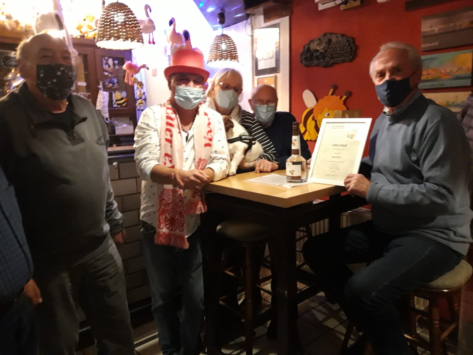 Zu den Urkunden gab es jeweils ein sehr leckeres, flüssiges Präsent vom Vorsitzenden Frank Müller.